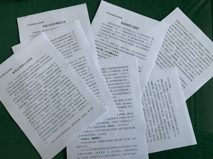 同学们或深情记述曾祖父辈英勇就义的可歌可泣,或认真聆听曾祖父、祖父讲述的老红军、新四军、老革命舍生忘死的感人至深,或实地学习家乡烈士献身报国的英勇顽强……
