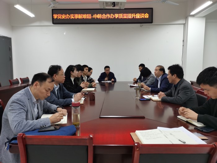 与会人员从中韩合作办学的教学模式、课程设置、学生管理等方面各抒己见,提出加强对中韩合作办学专业学生的入学教育、邀请有韩国留学经验的教师为学生召开讲座、中方与韩方教师定期沟通交流、提高学生双语水平等许多好的意见和建议。