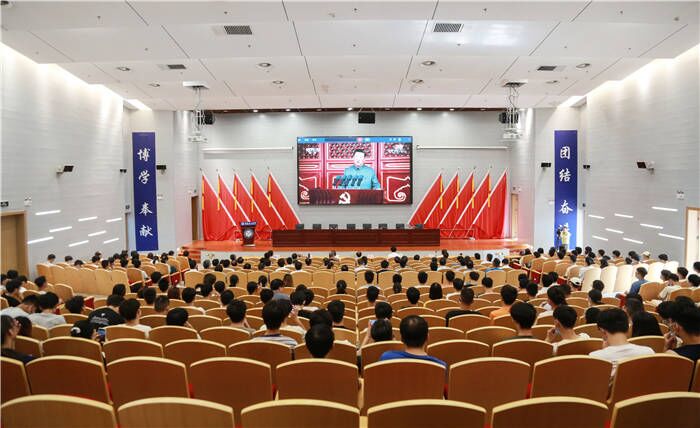7月1日上午8时,庆祝中国共产党成立100周年大会在北京天安门广场隆重举行。中共中央总书记、国家主席、中央军委主席习近平出席大会并发表重要讲话。学校组织师生代表在舜耕会堂集中收看了庆祝大会盛况。