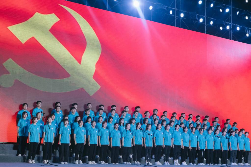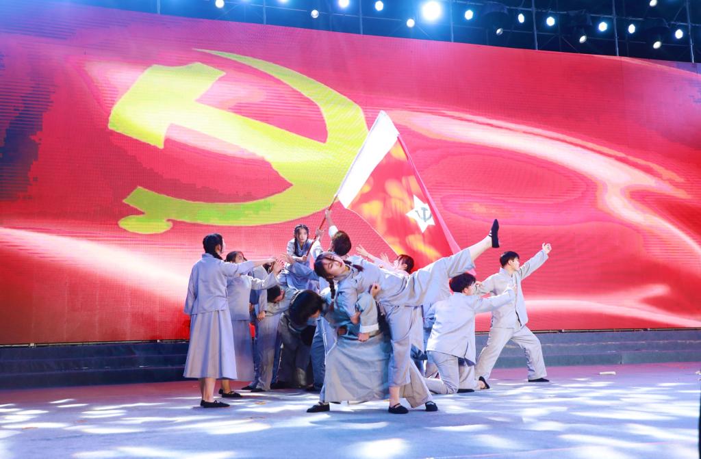 “中国共产党的诞生,这是开天辟地的大事变。”讲述人马克思主义学院教师张羽在党史讲述环节慷慨激昂地介绍着南湖红船上的伟大建党精神。沿着党史发展的脉络,3名讲述人带领全场观众穿越了新民主主义革命时期的浴血奋战,感受了社会主义革命和建设时期的伟大变革,迈过了改革开放和社会主义现代化建设新时期的中国道路,踏上了中国特色社会主义新时代向第二个百年奋斗目标进军的新征程。在党的百年伟大历程中,党始终践行让人民生活幸福这一“国之大者”,彰显了中国共产党一脉相承的人民立场、一如既往的赤子情怀、一以贯之的价值追求。