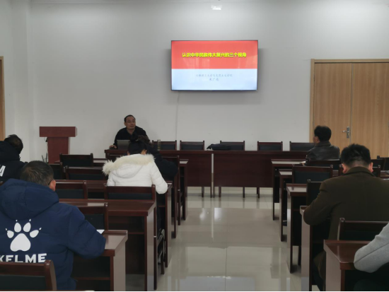 12月3日,体育部在至诚体育场A105会议室举办党史学习教育专题讲座,邀请马克思主义学院朱广亮教授做客“百川大讲堂”,作题为《认识中华民族伟大复兴的三个视角》的专题讲座。讲座由体育部党总支书记、主任邹瑞主持。
