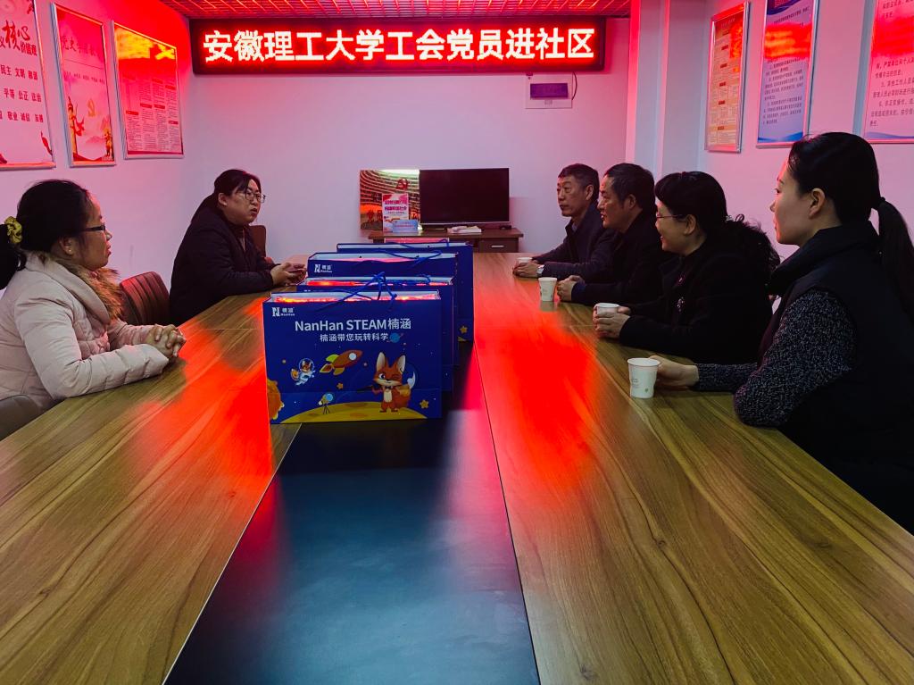 校工会党支部在职党员向理工大社区“未成年人活动室”送去了“儿童科学实验套装”;并与社区工作人员亲切交谈,详细了解了社区工作情况,倾听了他们的心声,帮助解决社区的实际困难,为社区孩子们送去冬日的温暖,社区工作人员代表孩子们对校工会党员们表示了感谢。